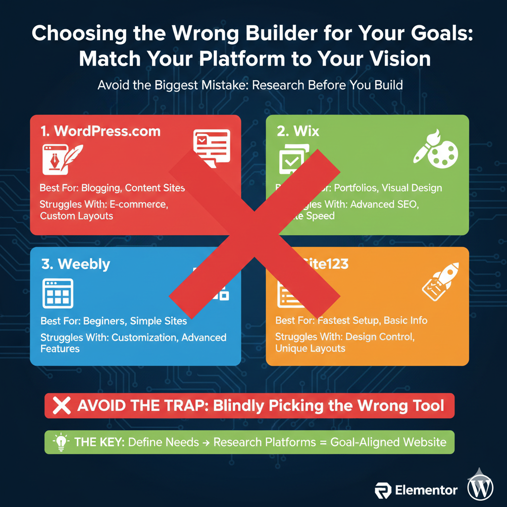 The biggest mistake happens before you create a single page: selecting a website builder that fundamentally misaligns with your goals.